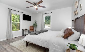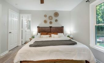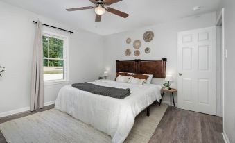 We had a lovely stay here for our Raleigh trip. It was a wonderful place and easy to get to Lenovo Center for a Canes game, and lots of options for food, etc. Having 3 king beds was definitely a plus, and the bathrooms were just perfect! The house is right off the road, but we never really heard any road noise and it was very easy to get on and out. The backyard is also great for hanging out. We will definitely stay again!!