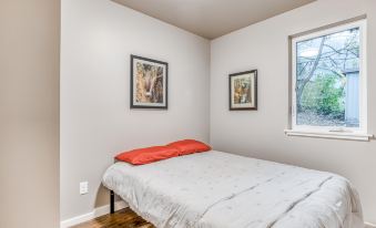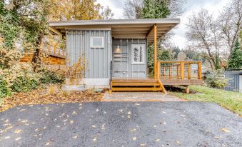 Beautifully positioned in downtown Cascade Locks with views of the surrounding Columbia River Gorge, this modern, two-bedroom home will place the Pacific Crest Trail, the Historic Columbia River Highway, and the Bridge of the Gods right at your fingertips. Newly constructed from a storage container, this home is a contemporary, light-filled space, with electric heating and cooling, a Smart TV with Netflix and Pandora, and an open, elegant kitchen with stainless steel appliances and sleek cabinetry. Whether you're planning to spend your days hiking, windsurfing, or taking long drives through the Gorge, this is a wonderful place to come home to, with a kitchen island where you can set out your appetizers and a separate sun-lit dining table for homemade dinners.