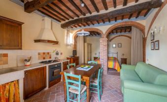 Cozy and traditional, offers the possibility to spend your stay in relax, immersing yourselves into the Tuscany style. It also provides you with instruments needed to cook your own meals.