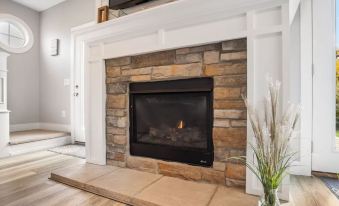 Once you arrive, you’ll step directly into the heart of the house—an open-concept kitchen, dining area, and living room anchored by a cozy fireplace. This is where mornings begin with fresh coffee and casual breakfasts, and evenings wind down with a glass of wine.