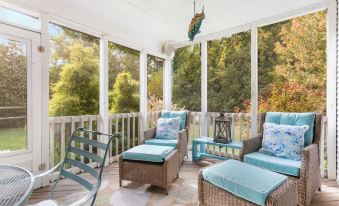 Just off this space is the screened-in patio—perfect for morning reading, afternoon board games, or quiet evening conversations away from the crowd.