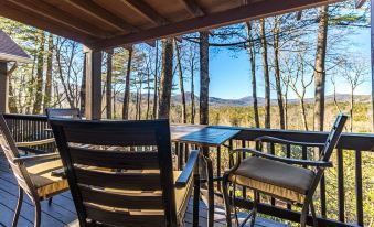 I consider myself picky, but every detail was truly perfect. The view of the mountains is breathtakingly beautiful. We had a lot of rain but the outdoor porch is designed so that we could still sit outside comfortably under the covered area, or inside a screened in porch, and stay dry. We loved having the grill and the house had everything we needed and more. The gathering area was perfectly designed for all of us to sit and play games, watch movies, or simply enjoy the fireplace. Every piece of furniture was very comfortable (especially the bed) and the house was spotless. We drove a short distance and hiked trails, saw waterfalls, strolled through the shops in Highlands and afterwards even went swimming at a covered, heated public pool they have there. However. I would have happily just stayed on that porch the entire time. We hope to return in the future!