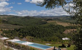 From the moment we arrived on a stormy night,we knew this place was special. we were greeted at our car with umbrellas, and the warm hospitality bean immediately. The manager Andrea , not only welcomes us but also made reservations for us at alocal restaurant , where we had a delicious meal. The next morning , we woke to realise we had arrived in paradise the 360-degree views were breathtaking, and the breakfast was exceptional. Fresh fruit picked from their own trees with homemade pastries and excellent coffee made for a perfect start to the day. Our rooms were stocked with fresh fruit, cookies and a free min bar filled with local artisan soft drinks and beer. We stayed in suite#4 which was beautifully decorated and spacious with a luxurious bathtub in the room. My sister stayed in suite #5 which had a fireplace and an even more stunning view.The rooms were cleaned daily with care and attention to detail. Yoga by the pool with views of the Tuscan hills, was a highlight of our stay. The hotel provided mats from their gym and the serene atmosphere made for a perfect practice. For my birthday dinner we dined at the hotels restaurant and it was flawless . the pastry chef made a decadent chocolate cake. The staff's attention to detail and willingness to accommodate our needs throughout our four night stay made it feel like we were guests at a friend's villa. Andrea, the general manager , was both professional and charming,and his warmthb was echoed by the entire staff. I truly never wanted to leaveand can't wait to return. This is a place where luxury meets geniune hospitality, and every moment feels like a dream