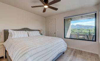 When you wake in the cozy king sized bad; relax and enjoy the mountain view. Enjoy the new, tiled walk in shower. Feel the warm water cascading down on you from the rain shower head.