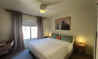 This cool condo in Tucson is a serene retreat for guests looking to unwind. With a cozy bedroom, two pools, fitness room, and WiFi, this enchanting space is perfect for a relaxing getaway. Close to the pool and far from the traffic! Our place is equipped for long term stays. One covered assigned parking spot included. Thirty day minimum stay required by HOA.About pets:Pets allowed: dogs (limit 2 total).About children:Children allowed: ages 0-17.About smoking:Smoking is not permitted.About events:No events allowed.