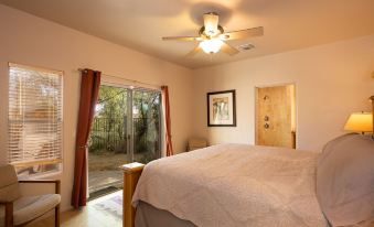 Miramontes is listed as 'wheelchair-accessible.' All rooms are on the same floor and the flooring is travertine which facilitates indoor wheelchair manoevering. The grounds, surroundings and hikes are not at all wheelchair-accessible however.About pets:No pets allowed.Owners willing to consider special exceptions.About checkOut:Check out before 9:30 AM.About children:Adults only.About checkIn:Check in after 3:00 PM.About smoking:Smoking is not permitted.Categorically no smoking please.About events:Events allowed.
