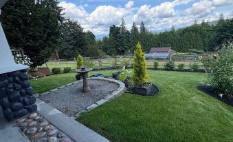 Located in Snohomish, enjoy what this 1-bedroom house has to offer. This phenomenal property features a cozy bedroom with a queen bed, 2 bathrooms with a bathtub and shower, and essential amenities like Wi-Fi, heating, and an iron. It's easy to see why you'll be able to unwind at our place. Peaceful private space (covered porch with chairs) and umbrella table on cute patio to watch morning sunrise; enjoy garden with a cup of coffee or relax evenings with a glass of wine. Close to many historical Snohomish storefronts, wedding venues as well as breathtaking mountain views.About pets:Pets allowed: dogs less than 20 lbs per pet (limit 2 pets total).THIS IS A NON SMOKING PROPERTY. No smoking/vaping.About checkOut:Check out before 11:00 AM.About children:Adults only.About customRules:PLEASE KEEP PETS OUT OF LANDSCAPED AREAS