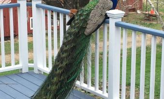 A charming private two bedroom farm home nestled among the evergreens with breathtaking views of the countryside and hills. In the winter you can rent/bring your own snowshoes and hike the trails. In spring and summer visit the vegetable gardens to pick your dinner salad. In the morning, collect fresh brown eggs. Wake up to crowing roosters and go to sleep watching spectacular sunsets over the mountains. You may choose to just relax in your own little private farmhouse or participate in seasonal farm activities. Enjoy a visit from our peacocks and walk your pup over the different trails.About pets:Pets allowed: dogs (limit 1 total).Current rabies certificate before arrival..About checkOut:Check out before 11:00 AM.About children:Children allowed: ages 0-17.We do not provide any baby equipment..About customRules:Please call the farm to schedule your visit. Please submit a picture of your dog’s rabies certificate before arrival..About checkIn:Check in after 4:00 PM.About smoking:Smoking is not permitted.About minBookingAge:Minimum age to rent: 18.About events:No events allowed.