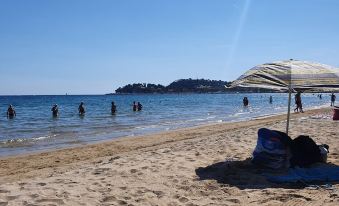 The nearest airport is Hyeres Airport, located about about 1 hour 6 mins from hotel by car (46.1 km) away.How do I get to 300 m from beach and shops from the nearest airport?
