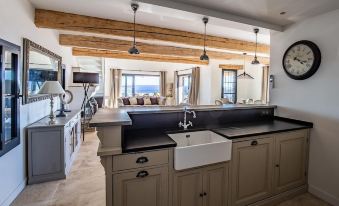 The private heated infinity pool is directly accessible from the living areas of the villa by a terrace with 180 ° sea views.