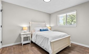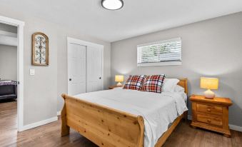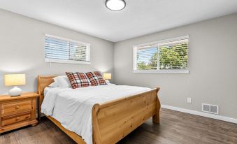 The main floor has 3 bedrooms; one queen bed, one full bed, and one twin bed. Pack and Play crib available as well as a high chair that fits on a chair. Main floor bathroom with dual sinks and a bathtub/shower combo. Dream kitchen with gas stove and everything needed to cook meals when you want to stay in. Cute breakfast nook and separate dining area for 4. Cozy living room with a television and electric fireplace. The basement has an additional bedroom with a queen bed and desk. Huge living room with super comfy couch and television. The basement also has a room to stretch or practice yoga. Additional bathroom with dual sinks and a large shower. Utility room with full-size washer and dryer. Huge backyard and patio with Adirondack chairs and a fire pit. Parking includes one covered carport, driveway parking and off-street parking.About pets:Pets allowed: dogs (limit 1 total).About checkOut:Check out before 10:00 AM.About children:Children allowed: ages 0-17.About customRules:NO SMOKING INCLUDING MARIJUANA. YOU WILL BE CHARGED FOR SMELL REMOVAL..NO PARTIES..About checkIn:Check in after 4:00 PM.About smoking:Smoking is not permitted.About minBookingAge:Minimum age to rent: 21.About events:No events allowed.