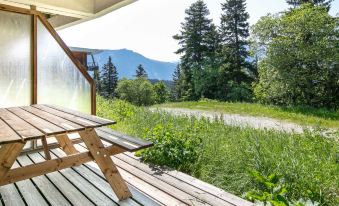 Chamrousse: Apartment block. 500 m from the skiing area. Supermarket 500 m. "V du Bachat Arolles A", 2-room apartment 32 m2, on the ground floor. Object suitable for 4 adults. 1 room with 2 beds and TV. Living room with 1 sofabed and 1 x 2 bunk beds, 1 pull-out bed. Kitchen (4 hot plates, dishwasher, toaster, kettle, microwave, electric coffee machine). Bath/WC. Terrace 11 m2. Please note: non-smokers only. Offer by a commercial proprietor according to Art. 155, IV, CGI