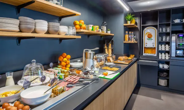 Room was comfortable enough, reasonable location, but that's where it ends. The air conditioning did not work and the toilet door, when open, prevented entry through the room door, very poor design. Breakfast was another level. The layout of everything meant that the majority of people were scrambling for room in the corner. Food was not regularly replenished meaning many people waiting for something which added to the crowds. Scrambled egg was the worst I've ever had in France, hot food was served out in tiny pots and almost always empty. Fresh pastries were a disgrace, I've never had a chewier croissant. The coffee from the machine was disgusting. The breakfast room was SO loud, I could barely hear my family at the table and the 4 slice toaster only worked on one side. Worst hotel breakfast experience I've ever had.