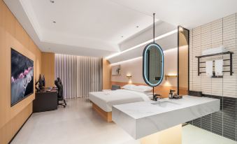 飛碼電競酒店真是讓人驚喜!從進門的賽博朋克風裝修就讓人眼前一亮,每個房間都配了頂配主機和機械鍵盤,手感超棒。電競椅很舒服玩累了倒頭就睡超方便。雖然房間不算大,但佈局合理,還有專門的超大電視機