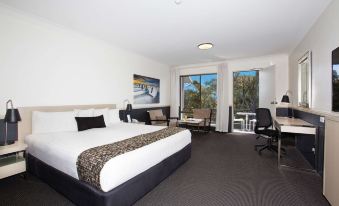 Guests enjoy stylish and contemporary 4.5 star hotel rooms and suites, with free Wi-Fi and a balcony with views across the tranquil bush land setting. All rooms are equipped with luxurious pillow top bedding, large flat screen televisions with free Foxtel.