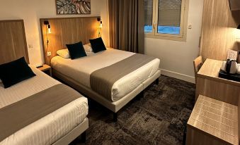 Very good overnight hotel. Friendly and helpful receptionist. Very clean room and bathroom (although not in the first flush of youth). Convenient for a walk into Cognac centre for evening meal.