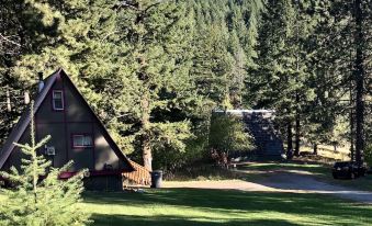 Little Wolf Den - A-Frame Cabin. (STR#000358) Escape into the mountains to this destination location where fresh alpine air and a scenic river await your arrival. Nestled in a rural mountain community, along a wild and winding river, our A-frame cabins are situated on two acres with spectacular views. A secluded trail from your cabin leads down to the river where you will find our private beach. While your cabin is backyard to the Enchantments, we are only 15 minutes from Leavenworth and your pets stay free!