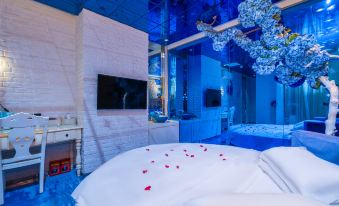 特價圓床房比較小,加了40米升級。裏面風格孩子比較喜歡,選的藍色地中海風格的,圓床房,圓形浴缸,藍色背景,提供洗漱用品馬桶墊和浴缸膜,馬桶墊太差沒法用,設施有點陳舊,臉盆水龍頭是活動的,衞生堪憂,衞生死角太多。還好帶了一次性四件套和馬桶墊。