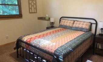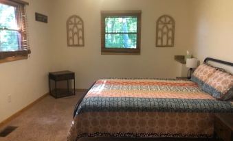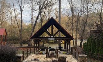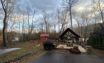 Located in a mountain/river neighborhood with paved roads. Enjoy the fire pit and patio with woodburning fireplace. Separate from the main house, you will have complete privacy. It's fully equipped including a microwave, coffeemaker, toaster, fridge, Electric Frying Pan, and a large air fryer which also bakes & roasts. There’s a TV with sound system and gas fireplace for those chilly nights.