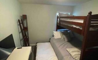 3 bedrooms: 1 bunk bed 1 single bed 2 queen beds and 1 king bed