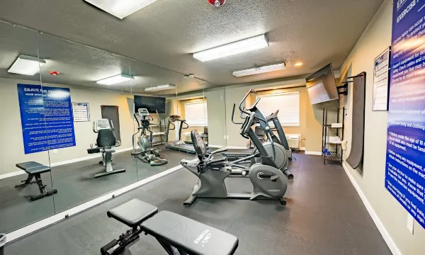 1st night - located next to workout room and side entrance door. Not a good night of sleep. Loud. Stains on sheets.