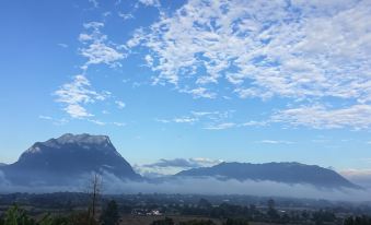Environment Location: Offers stunning views of Doi ChiangDao, located in a quiet and peaceful area. Surroundings are beautiful with lush greenery and mountain ranges visible.