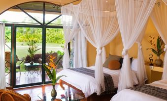 The phrase - “arrive as guests leave as family” certainly applies to this resort. The welcome is so warm from Rico, Deer and Ami and you are made to feel like a VIP from the moment you walk through the door. Rooms and bathrooms are very large and spacious with big windows. We loved our balcony seating overlooking the lake sunsets. We really enjoyed our 2 bike tours with Rico and Deer - seeing temples, old style weaving and the strangest house ever 😃 Rico has lived in this area for many years so knows and talks to everyone on the trips. Deer and Rico are so friendly, funny and engaging - so enthusiastic and keen for you to have the best time. Deer will also provide professional tennis coaching if needed on the superb courts. The range and quality of Ami’s and her teams food is exceptional and we really looked forward and enjoyed every single meal. Sad to leave here and hope to get back . Well done Rico - you have built an exceptional place !