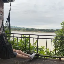 I was able to spend a wonderful time looking out at the Mekong River in the shared space.