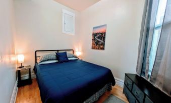 With 3 bedrooms, we offer 2 full beds and 1 queen size bed. Two bedrooms have large closets. All bedrooms have a nightstand and or dresser with a lamp. There is a work area with a desk that has height adjustment for sitting or standing. The kitchen is stocked with all cooking ware, dishes, utensils, blender, toaster, coffee maker and microwave. A dishwasher is also available for use. The back area has a large washer and dryer which is free to use. The unit also offers 600 mps WIFI. Currently there is one 55" smart tv in the apartment. The Bakeshop Chicago occupies the store front of the building. The Bakeshop is a café that offers coffee, breakfast sandwiches and pastries. This is very convenient. There are also restaurants on each side of the building. Excellent area!