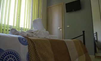 Pessima esperienza. Stanza molto vecchia e mal mantenuta. Igiene scarsa. Al momento dell'accoglienza, volevo aprire la finestra, ma l'ho immediatamente richiusa perché c'erano due dita di polvere nelle tapparelle, sicuramente mai pulite, e quando l'ho fatto notare alla persona che ci ha accolto, mi ha dato una risposta facendomi capire che è normale non pulire le tapparelle... sono rimasto basito. Per non parlare dello sporco e della polvere nei telecomandi. Inoltre, la scarsissima dotazione del bagno, prevedeva solo due bustine di sapone da doccia. Pessimo poi il fatto di trovare un rotolo di carta igienica già consumato a metà, ed il rotolo di scorta anch'esso già usato a metà.... a nuovo ospite, nuovo rotolo!! È una delle regole base dell'accoglienza. Per non parlare dell'illuminazione del bagno, praticamente inesistente. Se non fosse che avevamo già pagato e soprattutto, con 12 ore di guida, saremmo andati via immediatamente. Pessima esperienza. Da evitare accuratamente!!