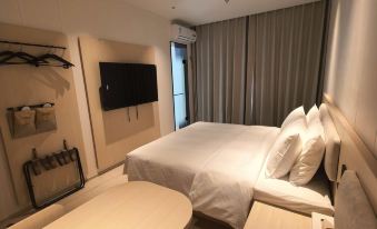 The hotel offers a variety of room types, including double beds, twin beds, and family rooms, all furnished in a modern and minimalist style and equipped with high-speed Wi-Fi, air conditioning, LCD TVs, and 24-hour hot water. The room design emphasizes practicality and comfort, providing a clean and quiet resting environment for guests. A 24-hour front desk is available to assist with inquiries, luggage storage, and other services. For extended stays, the hotel features a self-service laundry room with washing, drying, and ironing facilities. Dedicated parking is provided to accommodate self-driving guests, and a public lounge area is available for socializing or short breaks.