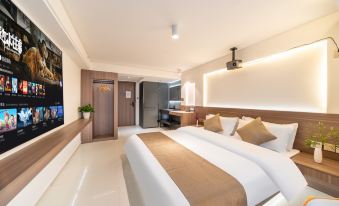 投影是意外驚喜,白天拉簾也能看4K極米投影,體驗感絕了。房間乾淨寬敞,隔音不錯,雖不含早但出門買很方便,下次還來!