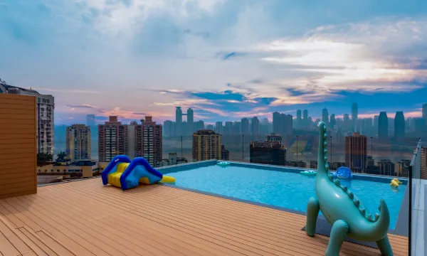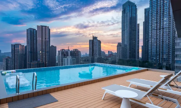 As a freestanding hotel with Roman-style architecture, it covers floors B2 to 13 and is equipped with an independent parking lot. The hotel offers smart guest rooms, Sealy mattresses, and a full-house smart system. On the 12th floor, there is a high-altitude river-view meeting room and a German-style restaurant. The 13th floor is a sky-view leisure area, featuring an infinity pool, a children's pool, and a dome bar, where guests can overlook Shibati (Eighteen Stairs), the city's night view, and the river scenery.