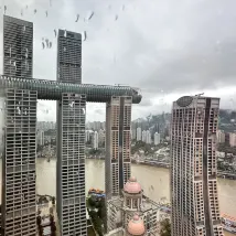 The hotel is placed right next to RafflesCity in the heart of Chongqing. When arriving, the first room I was placed in smelled atrociously bad, but after telling the staff at the desk they switched me into a new one no issue. The restaurants nearby are largely cheap and quick service kitchens, but still tasty. For larger, more quality restaurants you must either enter RafflesCity or leave the area. There also seemed to be a small issue with the door locks, but all other amenities and facilities were high quality and well maintained.