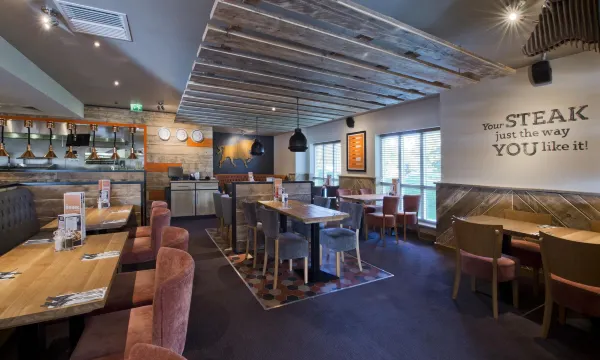 Premier Inn Cirencester Town Centre is nestled in the peaceful market town of Cirencester - the perfect base for exploring the rolling green hills of the Cotswolds. Get your walking boots on for a stroll along a winding footpath, marvel at Cirencester's Roman amphitheatre or make a splash at Cotswold Water Park. If you fancy a spot of shopping, browse the nooks and crannies of Black Jack Street for some rare finds. After a day exploring, sit down to a hearty dinner just next door at our Beefeater restaurant and then relax in your room with a 42" flat screen TV and luxury kingsize Hypnos bed.