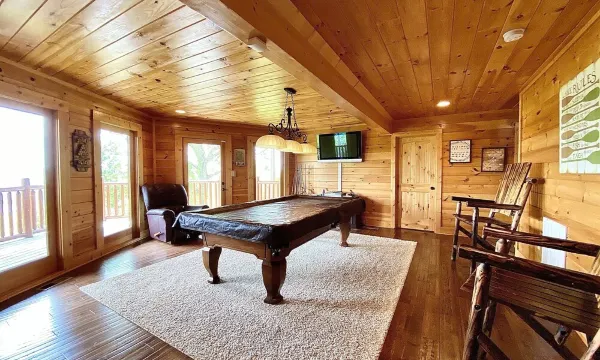 The views cannot be beat! I enjoyed coffee on the deck every morning, listening only to nature. It is such a peaceful location and the expansive deck allows you to fully enjoy it! If you’re more of an indoor person, this cabin will work for you, too. There is a game room on the first level with a pool table and air hockey. There are also many other games available to play throughout the home.The kitchen is well equipped with any pot/pan/utensil you could ever need. Save the packing and use what’s here. The knives could have been sharper. But, that’s my only kitchen complaint and it’s a complaint I have with any VRBO.There are 5 huge, well appointed, bedrooms. There were only 4 of us, but this home could easily accommodate 6 adults and 4 kids with room to spare. The beds were really comfortable and even the loft had separate temperature control. So, everyone was happy with the sleeping temp, no matter where they slept.The bathrooms were all clean and in great condition with very nice fluffy towels! My only bathroom complaint would be the low water pressure. But, this home is on the top of a mountain! So, it’s to be expected. And, we were still able to take very comfortable showers.Fire pit was great! Park was great! It’s close to Cedar Grove Marina where we kept our boat and that was great, too!JUST BOOK IT! You will love this home!
