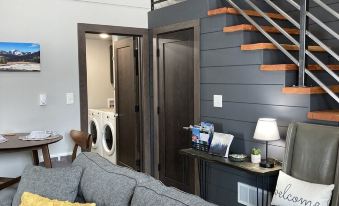 The Clancy Cottage is 800 SF with a modern/open floor plan and all the amenities needed for a comfortable experience. It is located in a relaxing setting with great views of Sheep Mountain and surrounding forest.