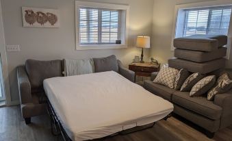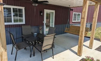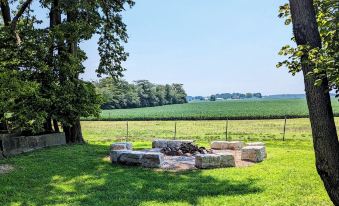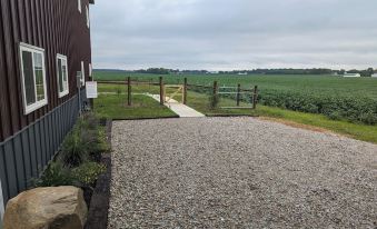 Your private unit is located in our brand new pole barn on our historic farm. It is a lower level unit that sleeps 4 and has 1 bedroom,1 full bath and a sleeper sofa. you will have a private fenced yard (perfect for those with furry friends) with fire pit and a large area for fun with your family. Covered porch with a relaxing porch swing, dining area and BBQ Grill.