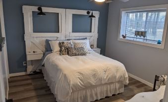 **In the photos you may notice an upper deck and entrance, this is empty space right now. Eventually we will be building on to add on to this stay, by adding another bedroom, bath and entertainment area. We haven't done this yet, but know that you have no one else staying in your area. It's a completely private stay. About pets:Pets allowed: dogs (limit 2 total).About checkOut:Check out before 11:00 AM.About children:Children allowed: ages 0-17.About customRules:Smoking and Vaping at firepit only.No drugs or partying,Local Noise Ordinance in effect at 9pm EST.About checkIn:Check in after 3:00 PM.About smoking:Smoking is not permitted.About minBookingAge:Minimum age to rent: 18.About events:No events allowed.