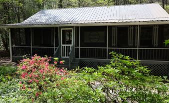 Front porch is screened with space for dining or relaxing. Views of front yard filled with azaleas and greenery. Rear yard is accessible from dining room. Lots of space to explore, watch for deer or listen to woodpeckers. Set up your hammock and find the perfect resting place.