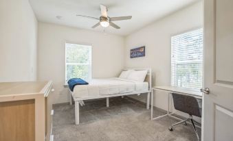 Step into style and comfort with thoughtfully designed spaces featuring luxurious wood-style flooring, stainless-steel appliances, and stunning tile backsplashes complemented by sleek granite countertops. Each home boasts high-powered Wi-Fi, a deluxe 65” flat-screen TV, and contemporary furnishings. Soaring nine-foot ceilings, designer lighting, and ceiling fans create an airy and inviting atmosphere.
