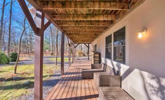 You'll be relaxing in style at our spacious and newly renovated 4 bedroom home in a gold star resort with outdoor pool (open summer), indoor pool (open winter wed/fri eve and daytime sat/sun), 2 lakes, beaches, playgrounds, beach volleyball, basketball, tennis and more. It features an open concept design, wood burning stove, game room, outdoor deck with grill, firepit, and seasonal kayaks. Located in the heart of the Poconos, close to amazing State Park hiking, Ski Resorts, Casinos, Kalahari indoor water park, and more!About pets:Pets allowed: dogs (limit 2 total).About checkOut:Check out before 10:00 AM.About children:Children allowed: ages 0-17.About checkIn:Check in after 4:00 PM.About smoking:Smoking allowed: in designated areas.About minBookingAge:Minimum age to rent: 18.About events:No events allowed.