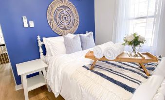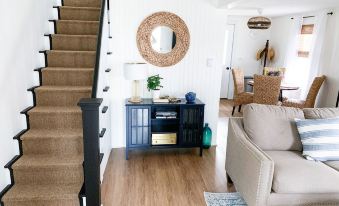 As a twin home, this beach cottage offers not one but TWO separate living spaces, each with its own private entrance for added seclusion and comfort. Both living spaces has been carefully designed in soothing shades of blue and white to create a calm and serene atmosphere. Sink into the plush sofas and let your worries melt away as you take in the charming beach decor and cozy ambiance.