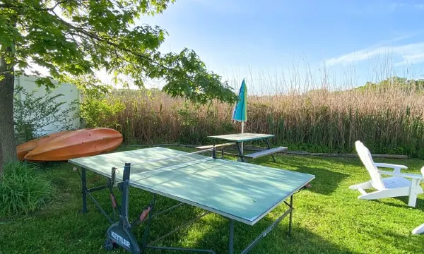 Our little slice of paradise! Step outside into the spacious backyard and take in the salty ocean air. The porch is the perfect place to kick back and relax with your friends and family, featuring two outdoor showers to rinse off the sand from a day spent at the beach. For those who love a little friendly competition, we have provided a corn hole set and ping pong table for your entertainment.