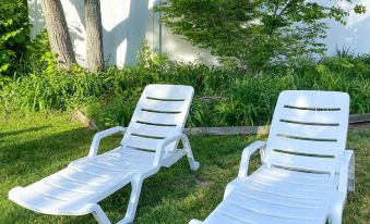 As the sun begins to set, gather around the cozy fire pit and roast some s'mores while you reminisce about your favorite beach memories from the day. Take a seat in one of our 6 Adirondack chairs and soak up the warm summer night air. For those who love to bask in the sun, we have also provided tanning chairs to help you work on your beachy glow. With everything you need for the perfect backyard hangout, you may never want to leave this peaceful oasis.