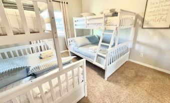 3 bedrooms: 2 bunk beds and 2 queen beds