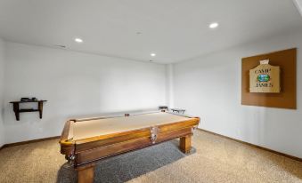 Wrapped in windows with stunning Northwest views, this second living room is equipped with comfortable seating, a huge TV and a fireplace. There’s also a fantastic wet bar with a wine cooler and microwave nestled in the corner! Just steps away, the game room features a high-end pool table, and tons of space for everyone to join in on the fun.