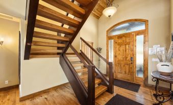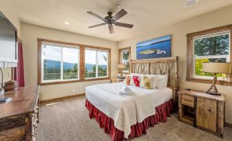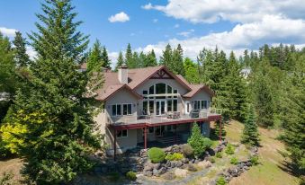 Located only 10 minutes from downtown Coeur d’Alene, Skyview Perch offers a luxurious escape overlooking stunning lake and forest views. The architecture throughout the entire home will wow you—including post and beam construction, hickory floors, and knotty alder trim, doors and cabinets.