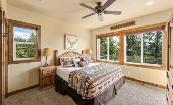 With six bedrooms and four full bathrooms, this luxurious home will comfortably sleep everyone. Perfect for the kids, there’s also an upstairs loft with two twin beds and two twin trundle beds. The primary bedroom is located on the main floor and features a king bed and attached bathroom with double sinks, a jetted tub and a shower. Located on the same floor, the second primary also has a king bed, plus an attached bathroom with a shower/tub.