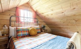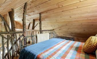 -This cabin comfortably sleeps three people, with two sleeping areas, including an open main loft sleeping area with a queen bed on the 2nd floor overlooking the downstairs living space along with a small separate twin nook/office on the opposite end of the catwalk. While the twin sleeping nook is mostly private, due to the open features of the sleeping areas, this cabin is best suited for a couple or small family. There is a clawfoot soaking tub that also has a shower, and a fire pit and grill on property.